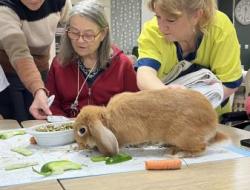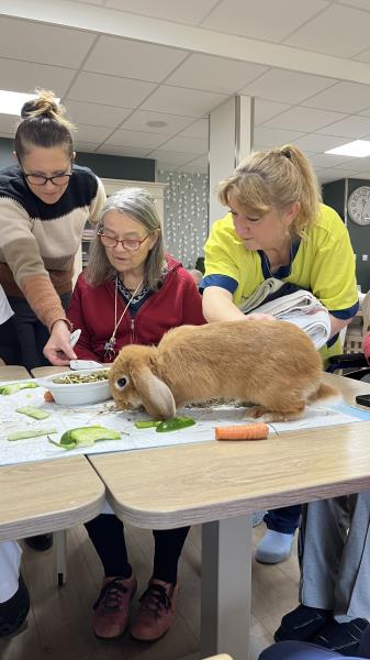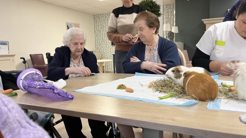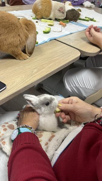 Les lingères sont venues se joindre à nous et, tout comme les résidents, elles ont beaucoup aimé la présence des animaux : lapin, cochons d’Inde et chienne.