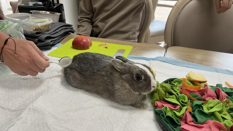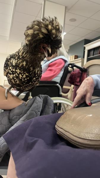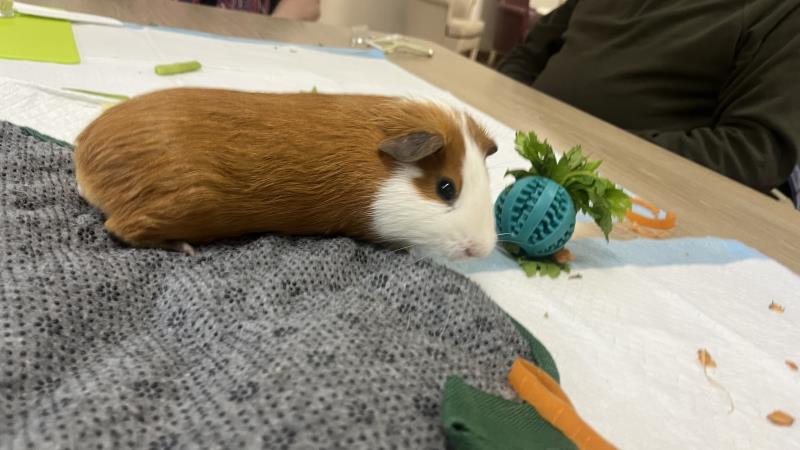 Les résidents ont été ravis de faire sa connaissance, de la caresser et de découvrir son caractère tout en douceur.