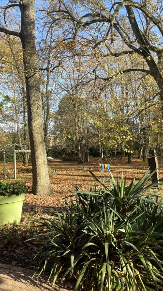 Cette œuvre originale a désormais trouvé sa place dans notre parc, sublimé en ce moment par les couleurs chaleureuses de l’automne.