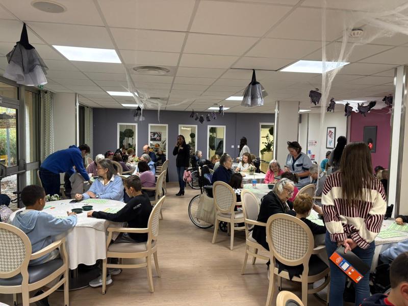 Le jeudi 30 octobre 2025, la résidence a eu le plaisir d’accueillir le centre aéré de Montfort-l’Amaury pour un loto intergénérationnel spécial Halloween !