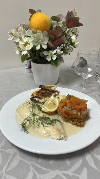 La tarte fine au potiron et parmesan a fait l’unanimité, tandis que le filet de limande sauce à l’aneth, accompagné de sa poêlée de légumes acidulés et de son gratin dauphinois, n’a pas laissé les gourmets indifférents.